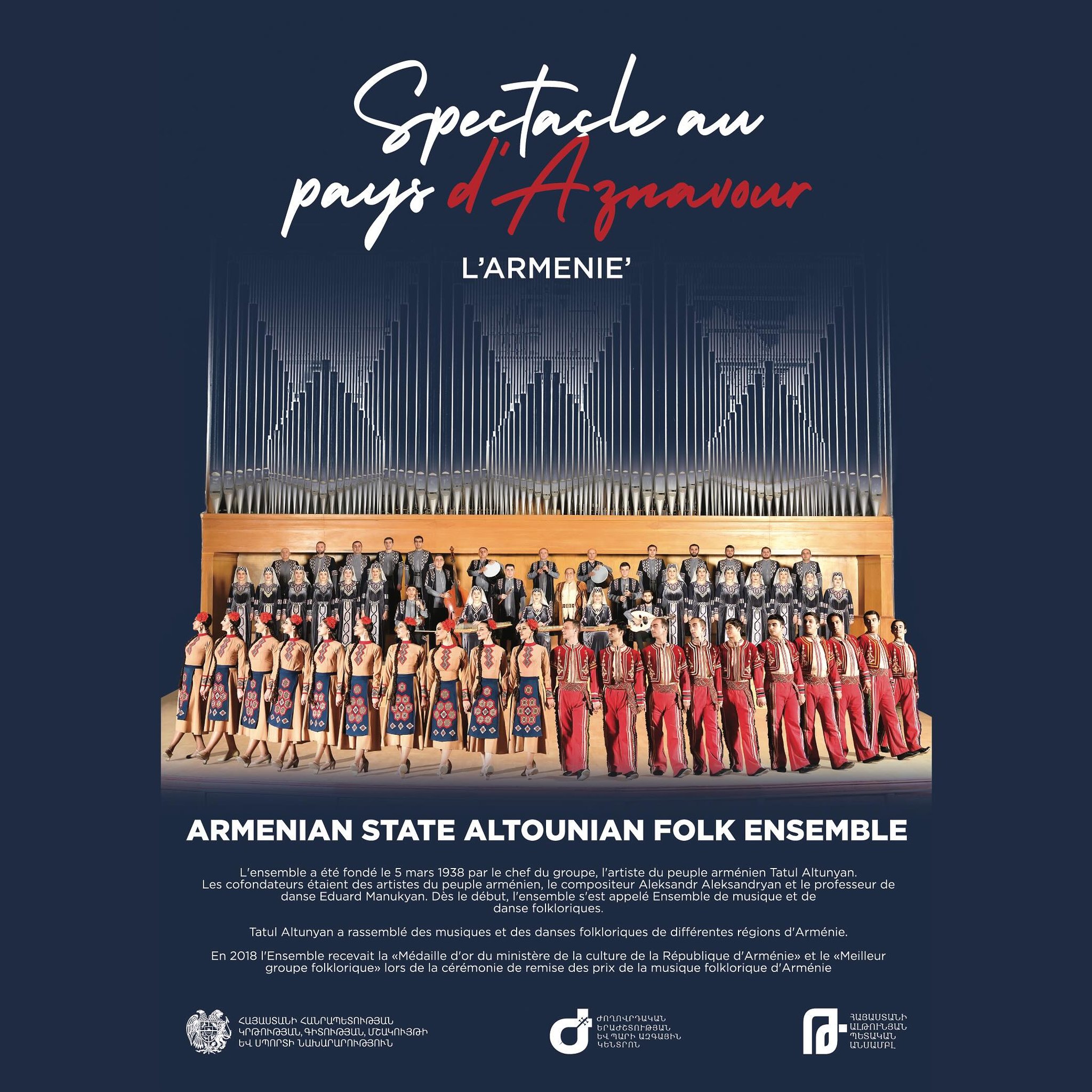 Հայաստանի «Ալթունյան» պետական անսամբլը ներկայացավ 23 համերգով Ֆրանսիայի տարբեր շրջաններում` Բրետտան, Օքսիտանիա, Նուվել-Աքվիտանիա, Օվերն-Ռոն-Ալպ, Փեյս դը լա Լուար և Վալ դե Լուար և այլուր։ Համերգներին ներկա էր շուրջ 30 հազար հանդիսատես, որոնց մեծամասանությունը ազգությամբ հայ չէին: