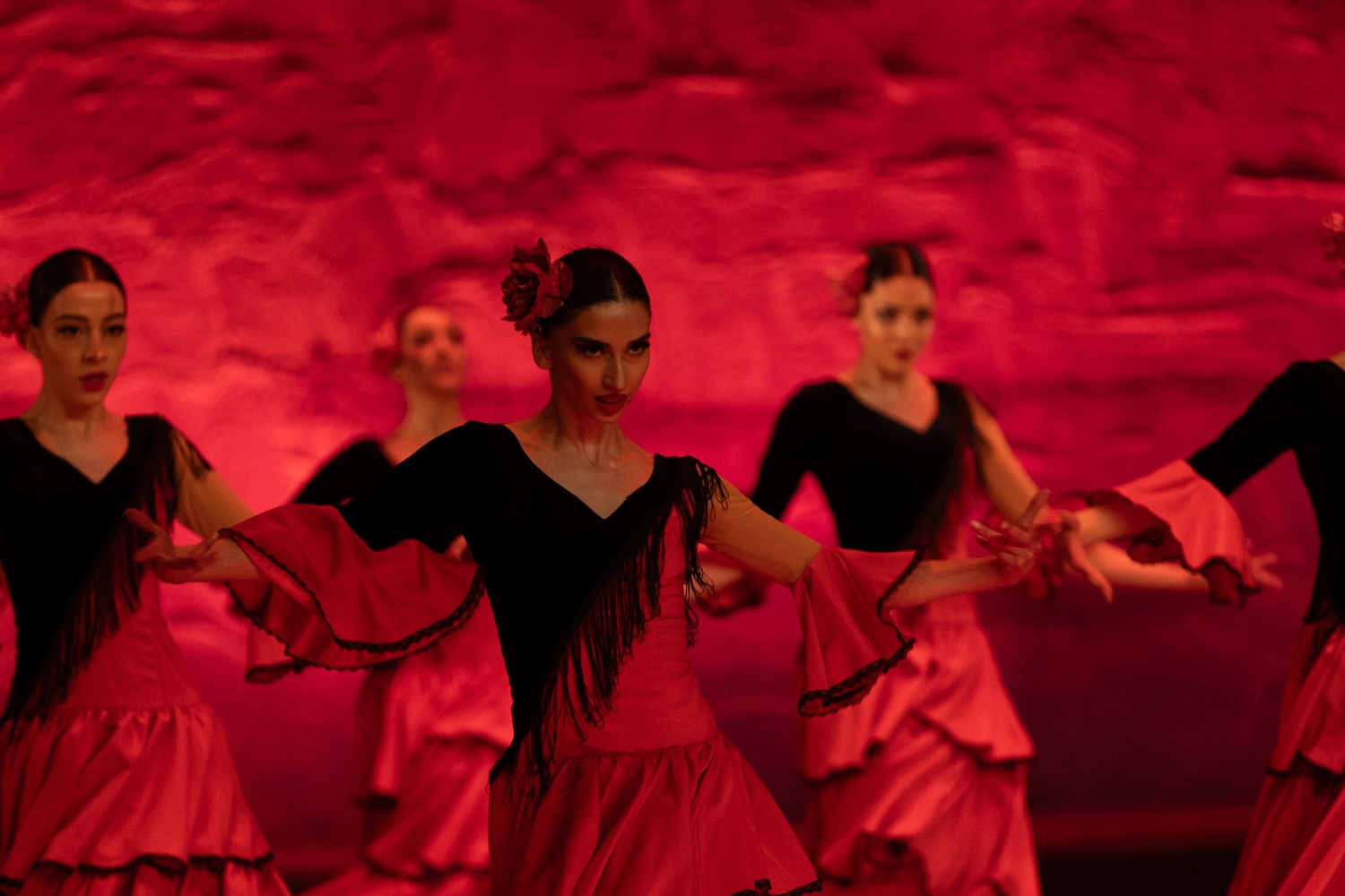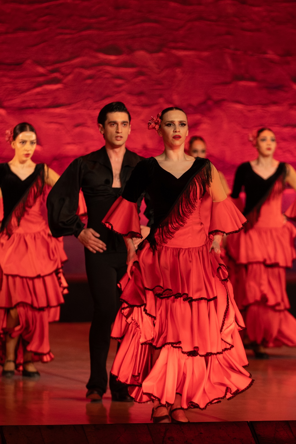 Առաջին մասում ուսանողները հանդիսատեսին ներկայացրեցին քոլեջի տնօրեն Դավիթ Գալստյանի բեմադրությամբ «Բեթհովեն. սիմֆոնիա N7» և «Վերադարձ արմատներին» բալետային ներկայացումները, հայ պարարվեստի ականավոր գործիչներ Վանուշ Խանամիրյանի, Ազատ Ղարիբյանի, Նորայր Մեհրաբյանի և Վիլեն Գալստյանի պարային բեմադրությունները: