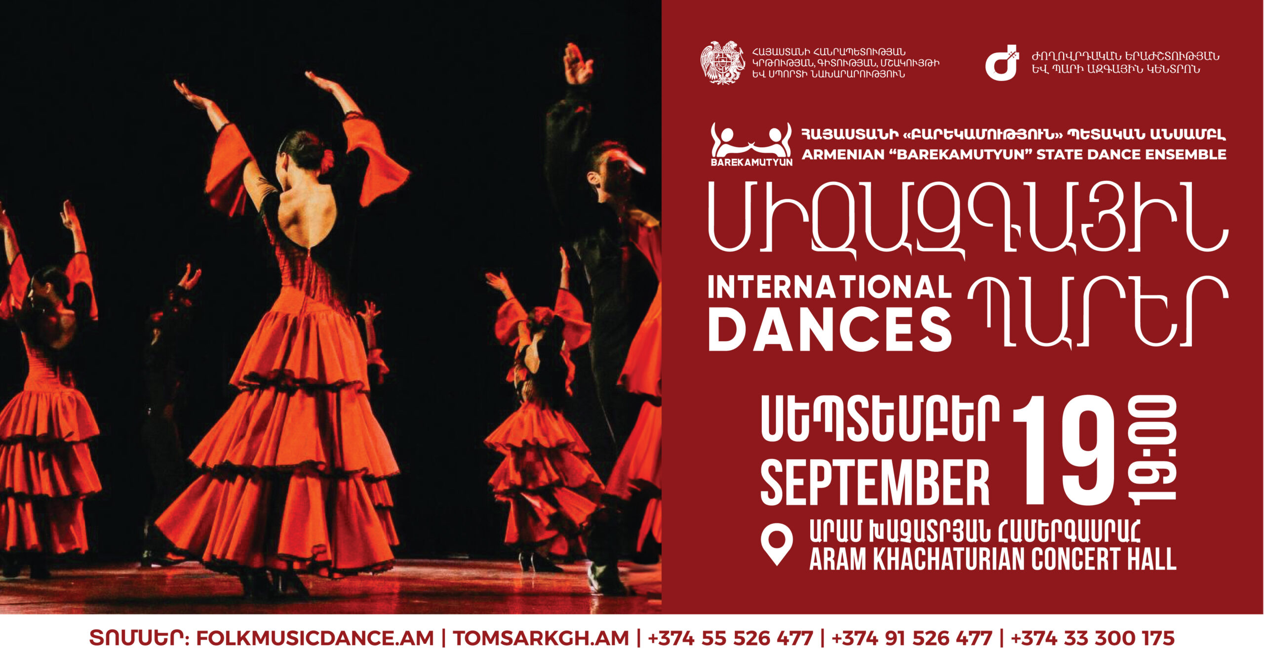 2024թ. սեպտեմբերի 19-ին ժամը 19:00-ին, Ժողովրդական երաժշտության և պարի ազգային կենտրոնի կազմում գործող Հայաստանի «Բարեկամություն» պետական անսամբլը հանդես կգա «ՄԻՋԱԶԳԱՅԻՆ ՊԱՐԵՐ» համերգային ծրագրով: